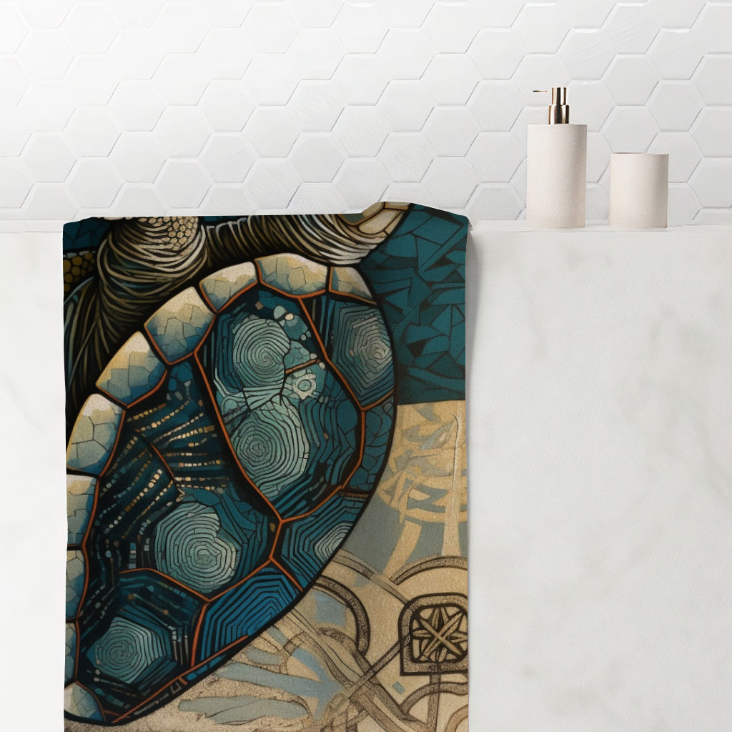 Turtle Print Mink-Cotton Towel – Artwork Bath Towel – Trendy Hand Towel