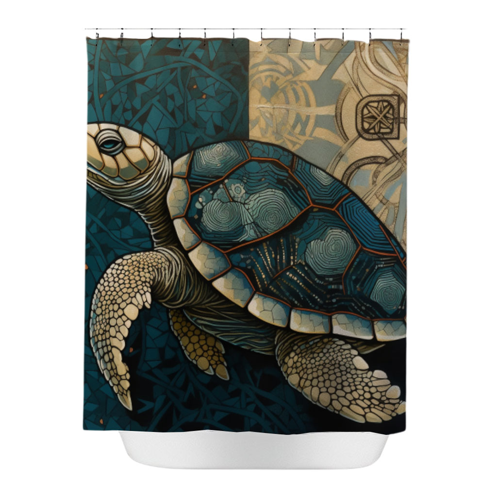 Turtle Print Shower Curtain – Artwork Waterproof Shower Curtain – Trendy Bathroom Shower Curtain