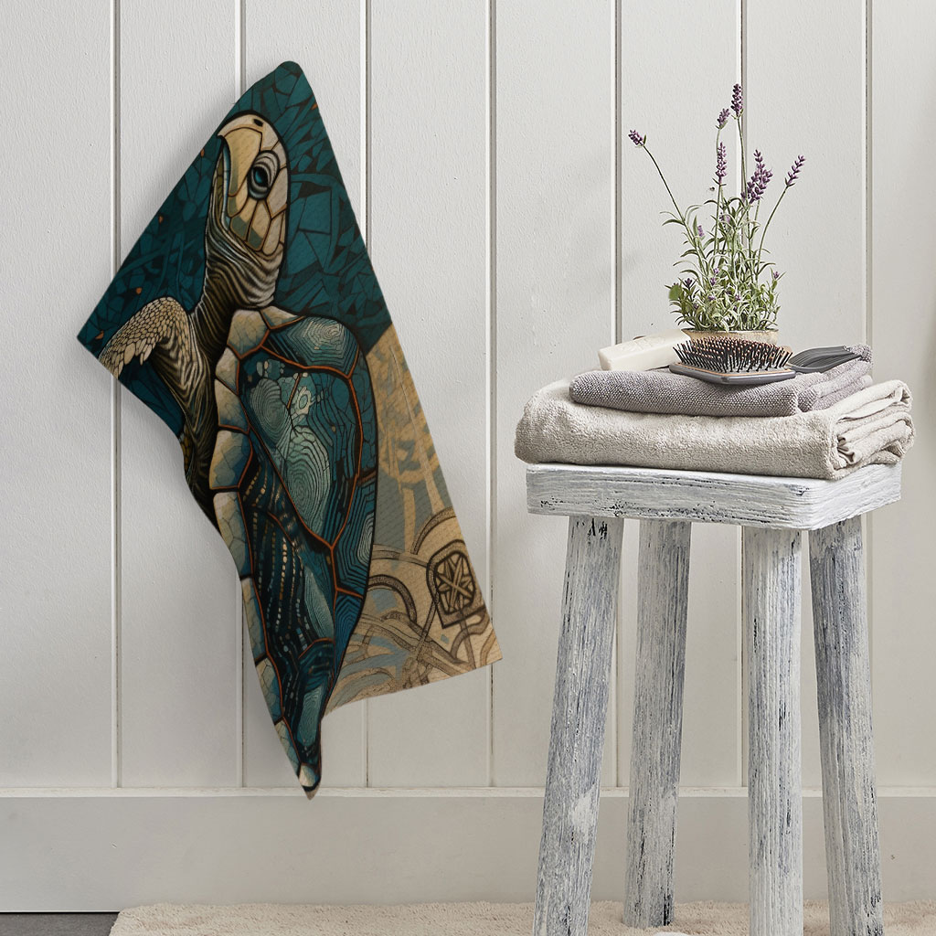 Turtle Print Soft Towel – Artwork Bath Towel – Trendy Towel for Bathroom